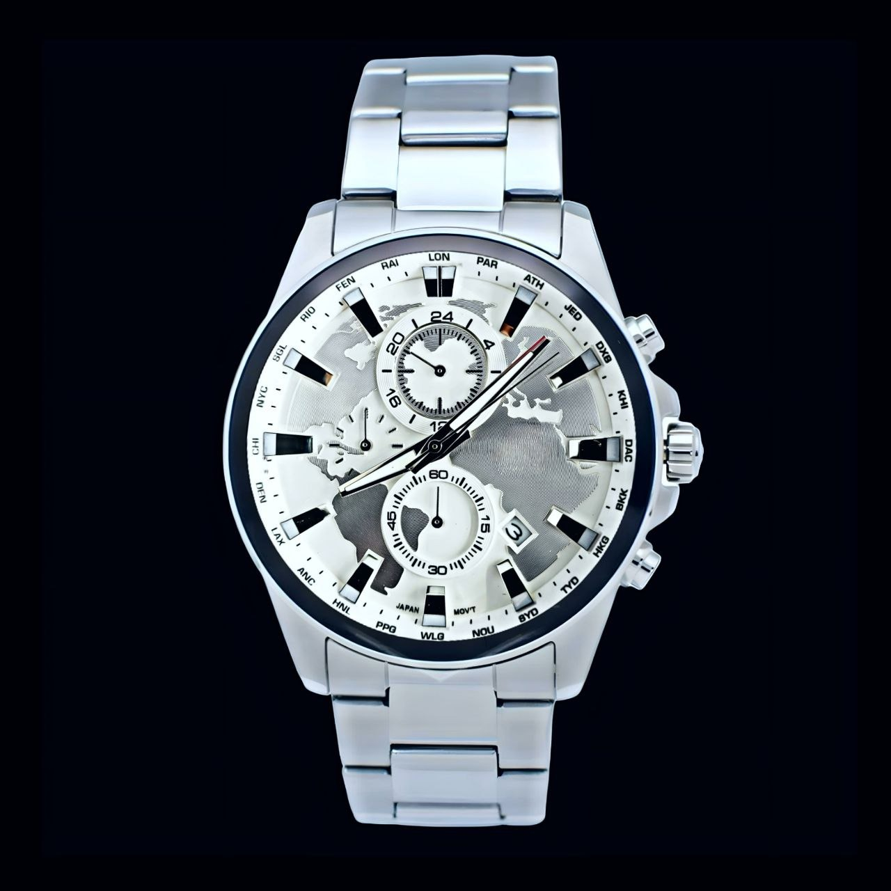 ساعت مچی عقربهای مردانه مدل سه موتور فعال کرنوگراف جهاننما کد 101، ترکیبی از طراحی لوکس و عملکرد دقیق است که برای آقایانی با استایلهای متنوع مناسب است. این ساعت مجهز به موتور کوارتز سه موتوره فعال است و علاوه بر نمایش زمان، دارای کرنوگراف، نمایش ۲۴ ساعته و تاریخشمار است.