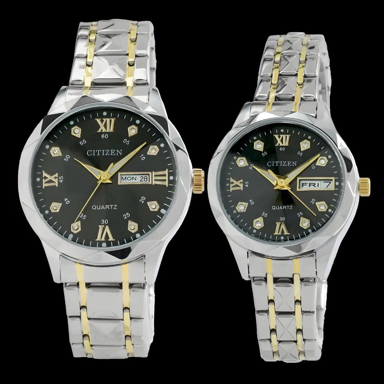 ست ساعت مچی عقربهای زنانه و مردانه مدل کوارتز دو تقویم کد cit-03
